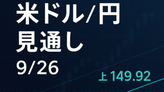 ブログ 米ドル円(USDJPY)1時間足 見通し|2025/9/26~ USDJPY 1時間足。強い上昇で149.92到達。150突破なら続伸、押しは149.40→149.00、割れでEMA200の148.02や147.49を意識。 2025.09.26 ブログ